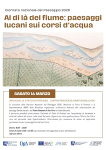 In occasione della Giornata Nazionale del Paesaggio 2026, sabato 14 marzo a Potenza si terrà l’iniziativa dal titolo “Al di là del fiume: paesaggi lucani sui corsi d’acqua”, organizzata dalla Soprintendenza ABAP della Basilicata e dall’Archivio di Stato di Potenza.